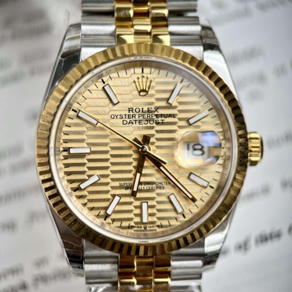 The Rolex Datejust 41mm Yellow Dial is a bold and captivating timepiece, designed for those who want to make a statement without compromising on quality. This high-quality replica from EW Factory offers an impeccable blend of style, precision, and durability, closely mirroring the authentic Rolex Datejust.