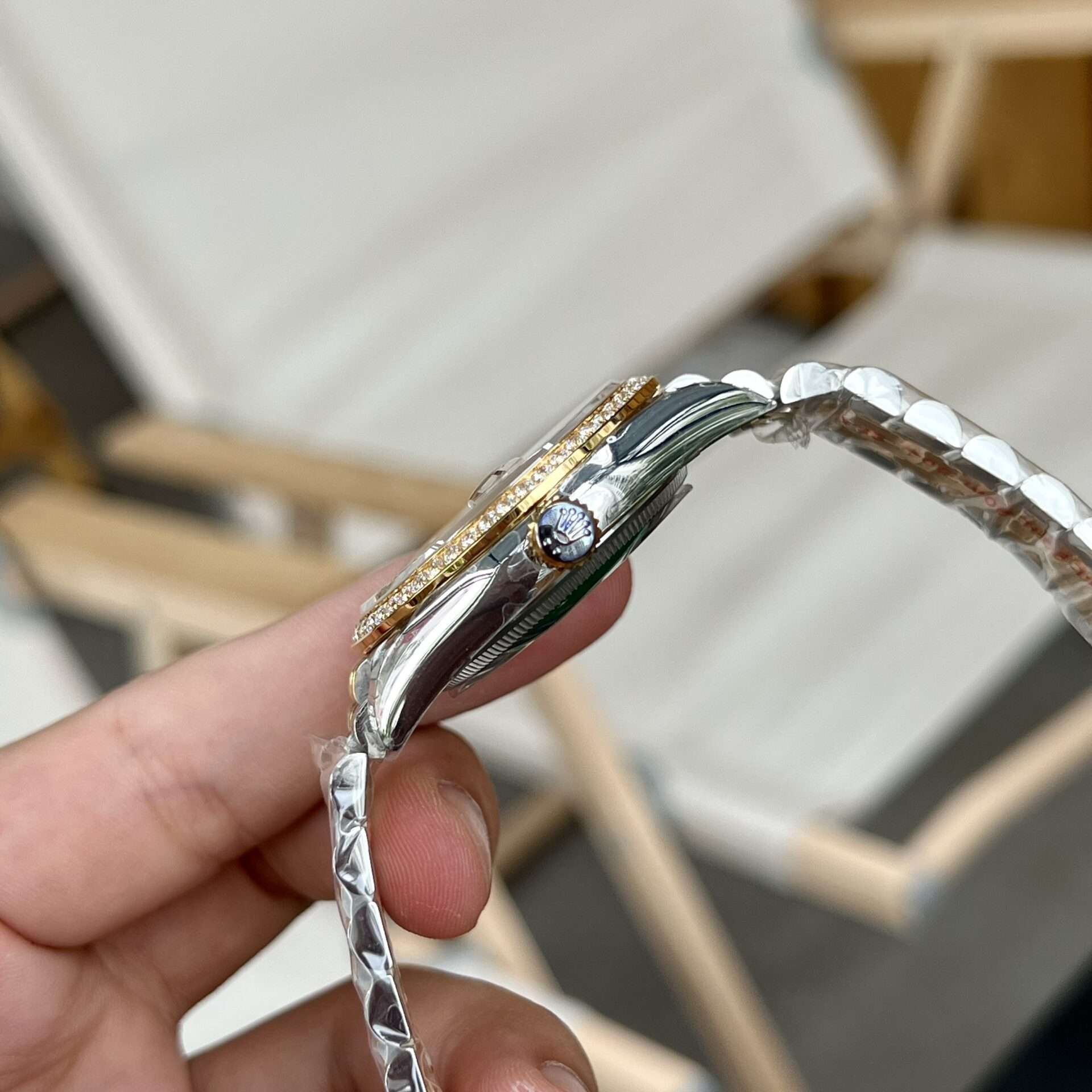 The Rolex DateJust Champagne Gold with Stone Jubilee Strap 1:1 replica combines luxury and elegance in a striking design. Available in both 36mm and 41mm sizes, this timepiece offers a sophisticated look with its champagne gold dial, accented by stunning stone markers that add a touch of sparkle and refinement.