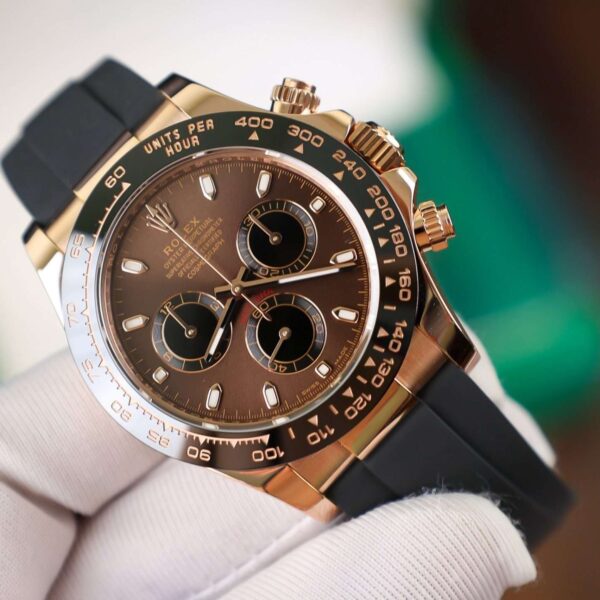 The Rolex Cosmograph Daytona Gold Wrapped Chocolate 40mm Replica is a sophisticated timepiece that combines luxury and performance. Featuring a gold-wrapped case with a rich chocolate dial, this watch is a stunning fusion of elegance and sportiness. The chronograph features are functional yet stylish, showcasing the iconic Daytona design. The watch’s gold-plated bezel adds a touch of luxury, while the carefully crafted markers and hands ensure readability. With its automatic movement, this replica offers high precision and reliability. The ceramic bezel enhances its sporty aesthetic and provides the functionality of a tachymeter scale. Whether you’re attending a formal event or looking to elevate your everyday style, this watch offers the perfect balance of sophistication and practicality.
