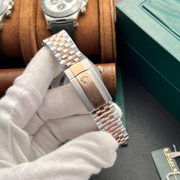 This 1:1 replica is powered by an automatic movement, ensuring precise timekeeping for everyday use. The date function at 3 o’clock is a practical feature, while the scratch-resistant sapphire crystal provides durability and clarity. The watch also includes the iconic fluted bezel, which adds to its classic aesthetic.